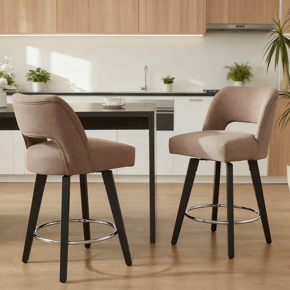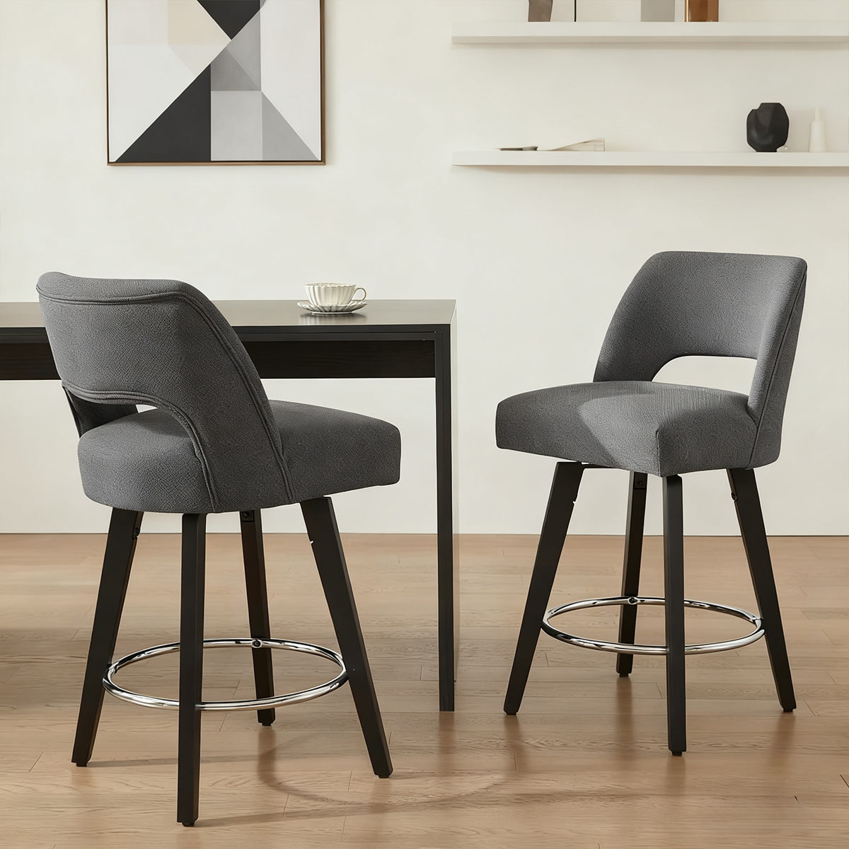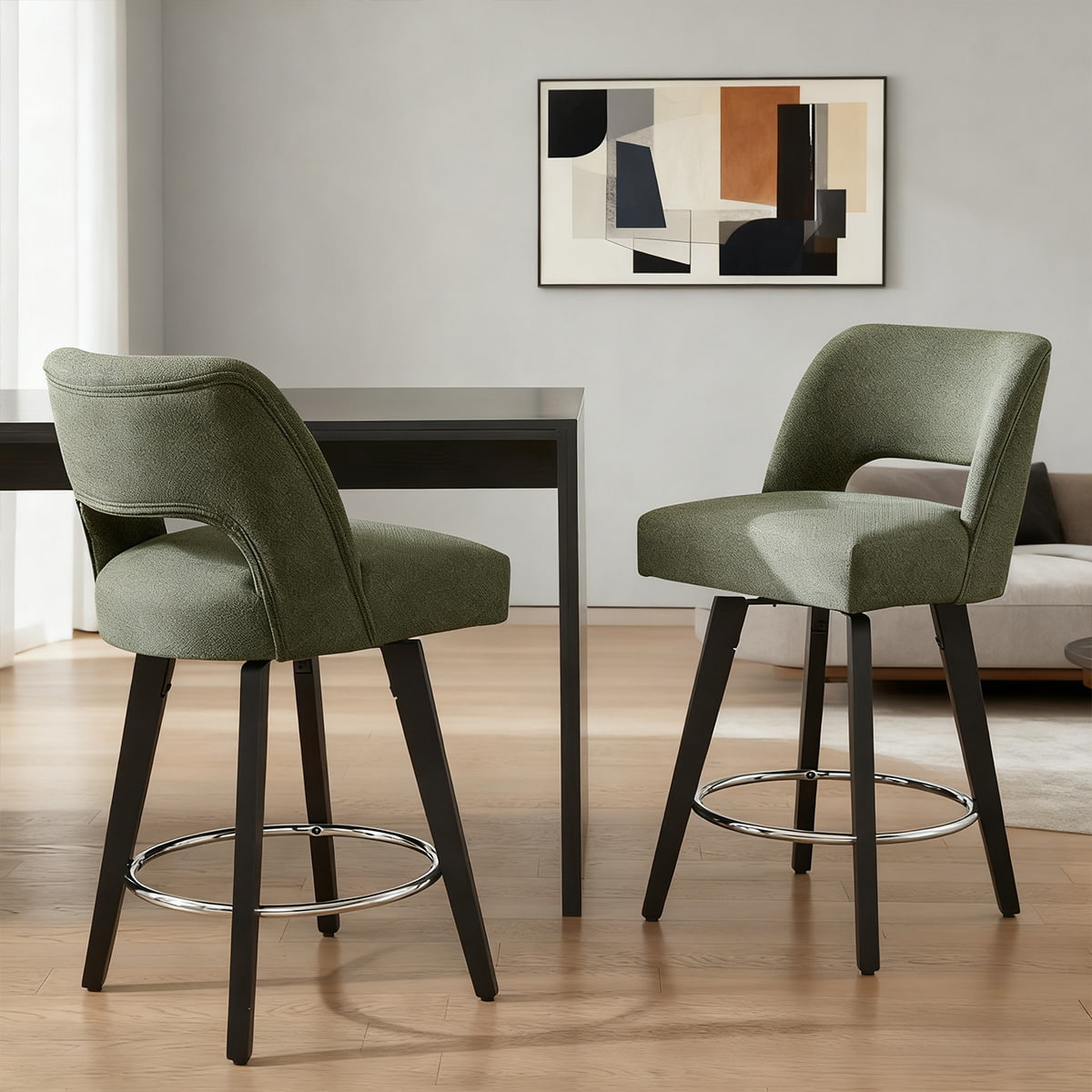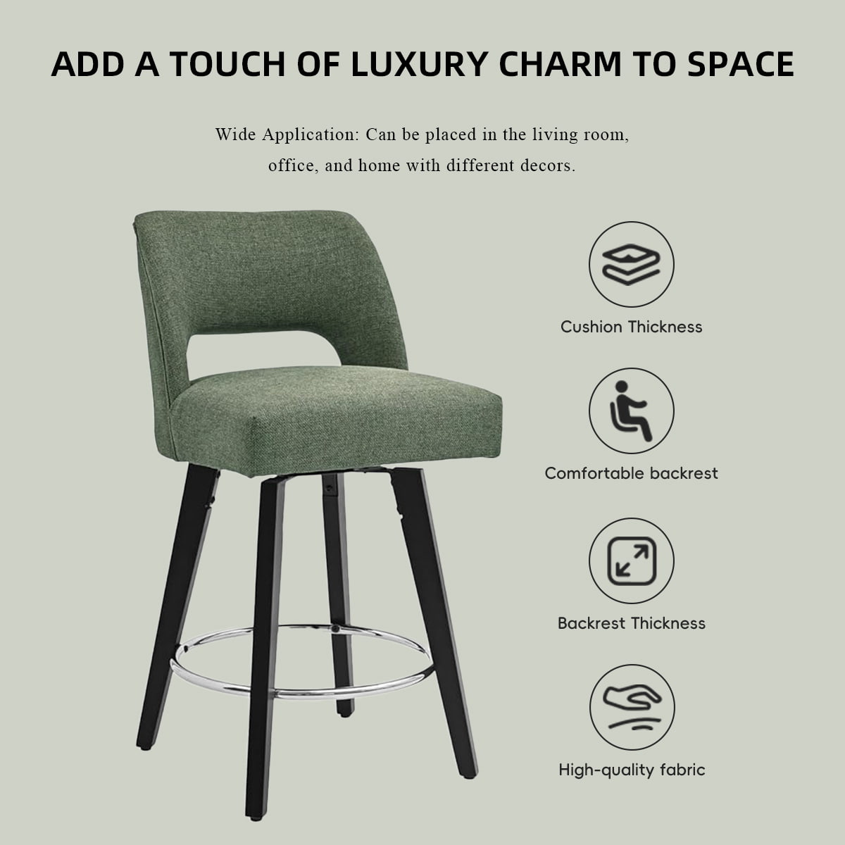 LIRE LA SUITERehaussez votre intérieur avec le tabouret de comptoir pivotant moderne DUOMEI, doté d'une silhouette élégante, d'un revêtement vert moelleux et de pieds en bois massif robustes rehaussés par un repose-pieds en métal argenté. Ce tabouret rembourré offre un confort exceptionnel avec son dossier ergonomique, son siège rembourré extra-large et sa rotation fluide à 360° — parfait pour les cuisines modernes, les bars à manger ou les espaces commerciaux élégants.