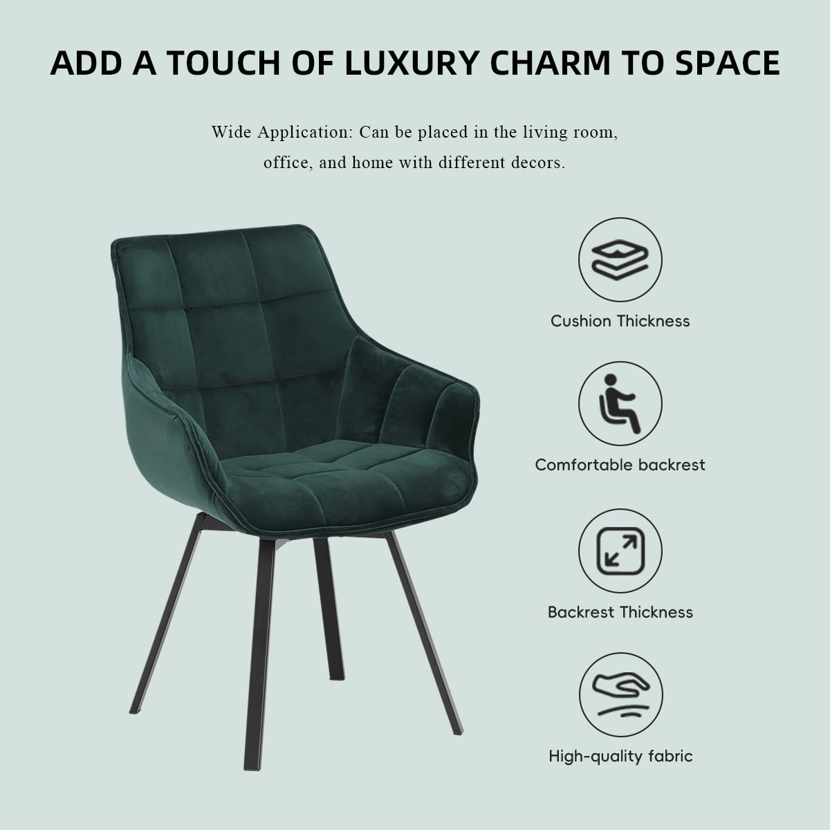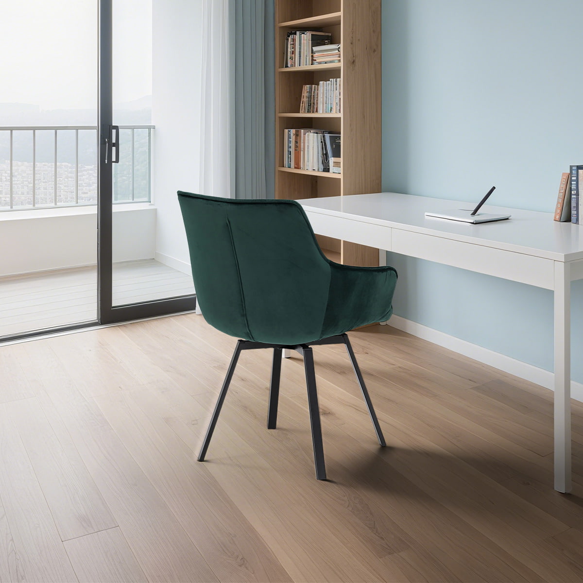Améliorez votre salle à manger ou votre bureau avec la chaise de restauration pivotante en velours vert - une solution de sièges luxueuse mais pratique avec une large base de siège, un dossier de style coco ergonomique et une base rotative à 360 degrés. Renue en velours vert haut de gamme, cette chaise de restauration moderne combine un confort moelleux avec des jambes en métal noir élégant pour une stabilité inégalée et un attrait visuel.