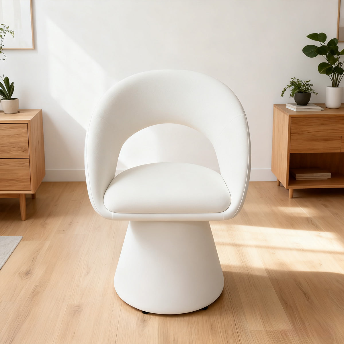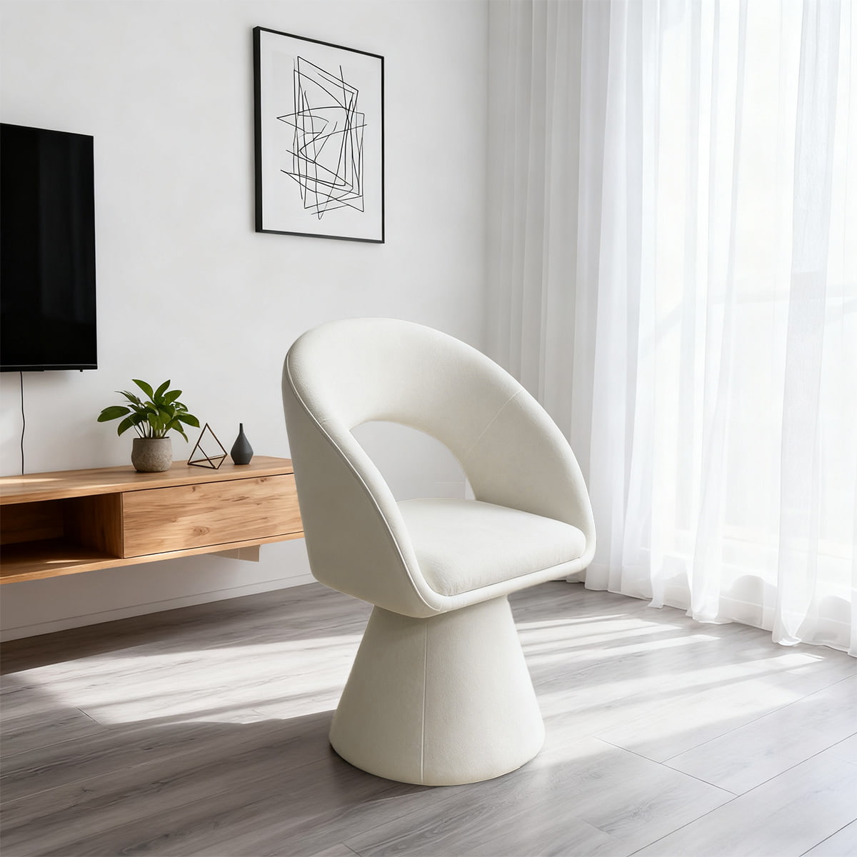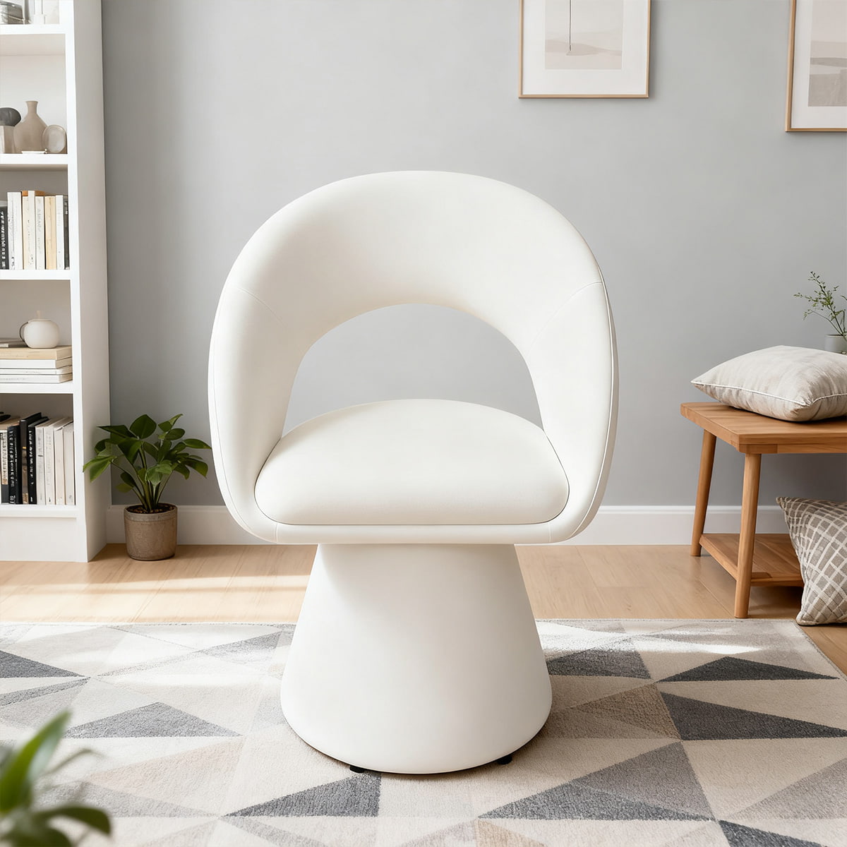 Chaise d'appoint pivotante en velours blanc crème au design incurvé moderne – Chaise de salle à manger et de loisirs rembourrée rotative à 360° avec dossier creux
