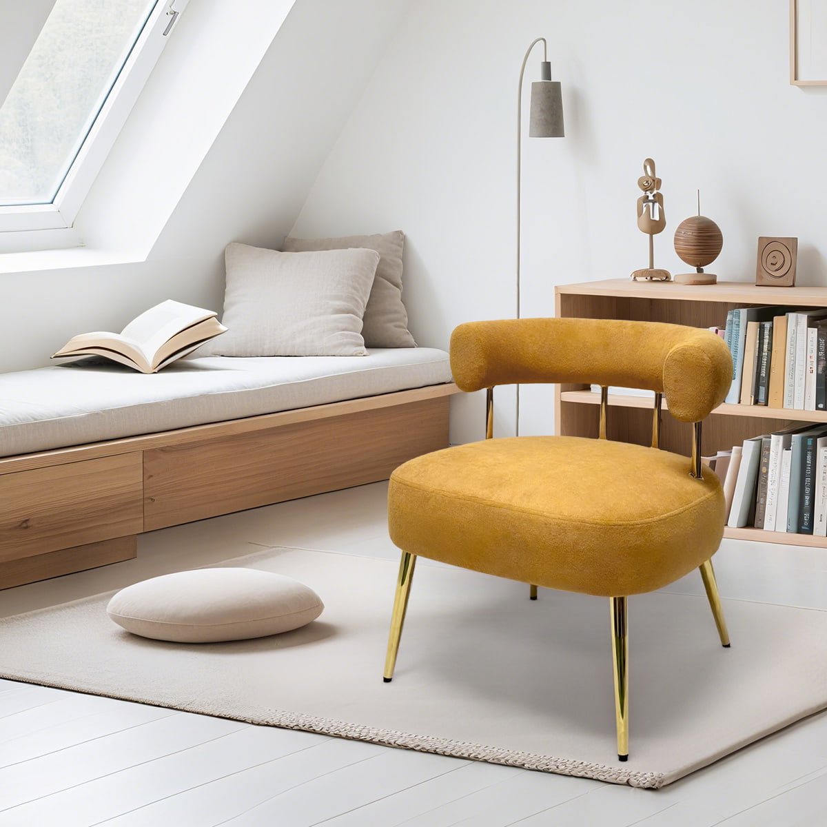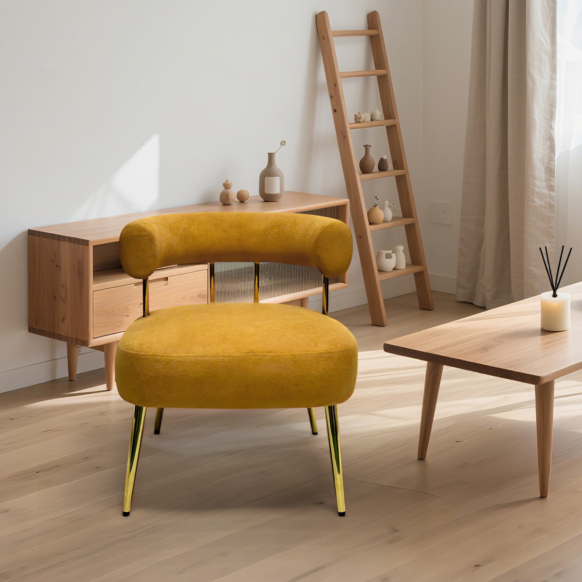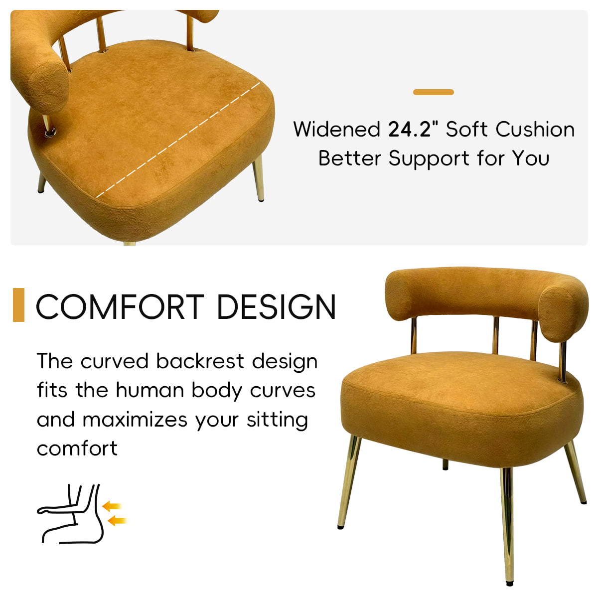 Les jambes en métal doré ajoutent non seulement une touche moderne, mais fournissent également un support solide en roche avec une capacité de poids de 300 livres. Que vous recherchiez une chaise d'accent boucle élégant, un siège de vanité du milieu du siècle ou une chaise de lecture confortable, cette pièce polyvalente s'adapte parfaitement à n'importe quel environnement. Scratch-Resistant, Anti-Pilling et facile à nettoyer, c'est un choix pratique pour les designers d'intérieur, les revendeurs de meubles et les propriétaires soucieux de leur style.