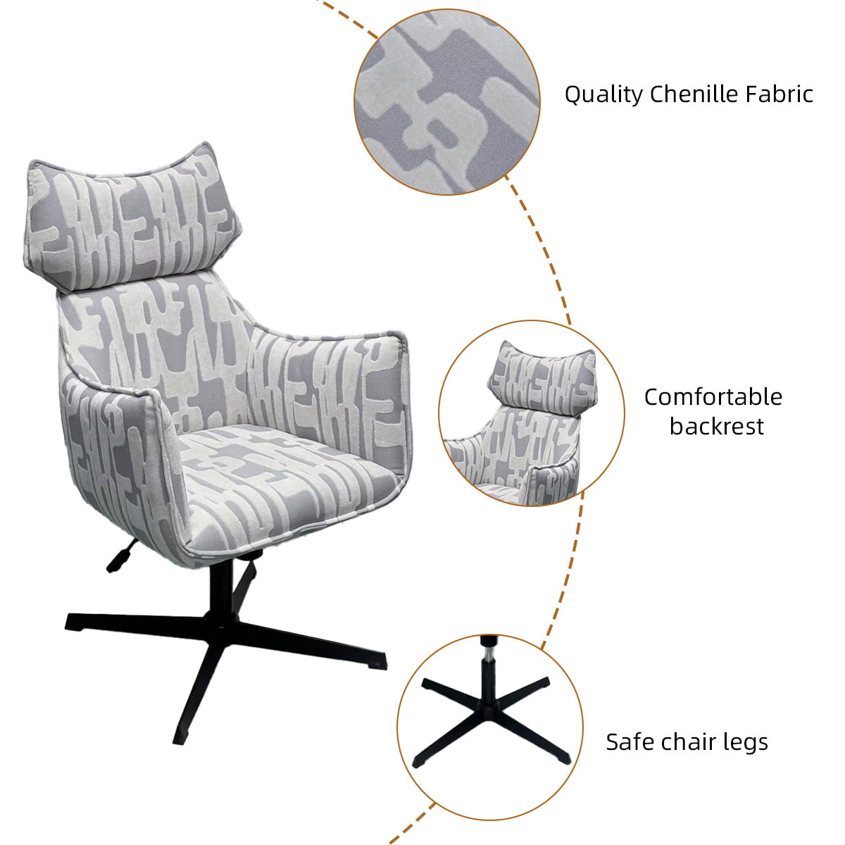 Fauteuil d'appoint pivotant moderne à hauteur réglable — Chaise longue en tissu rembourré avec base en métal et accoudoirs pour salon, bureau ou hôtel
