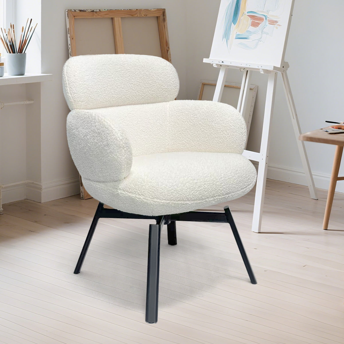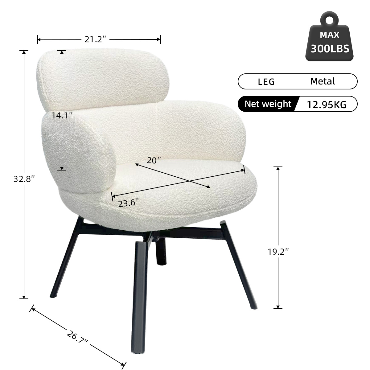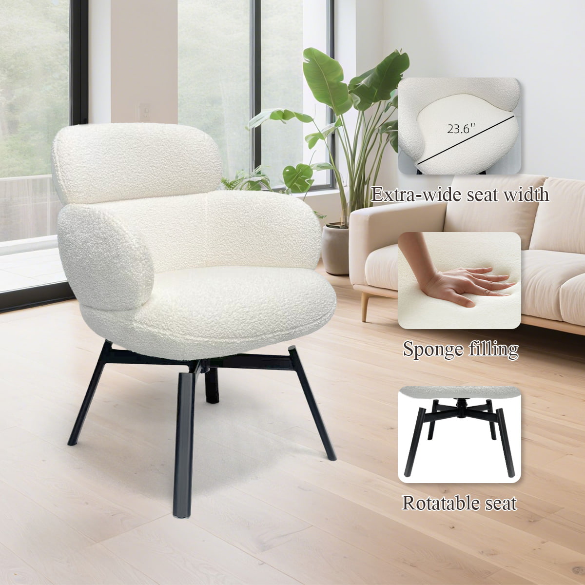 Chaise salon pivotante bouclé moderne avec siège extra-large et jambes métalliques