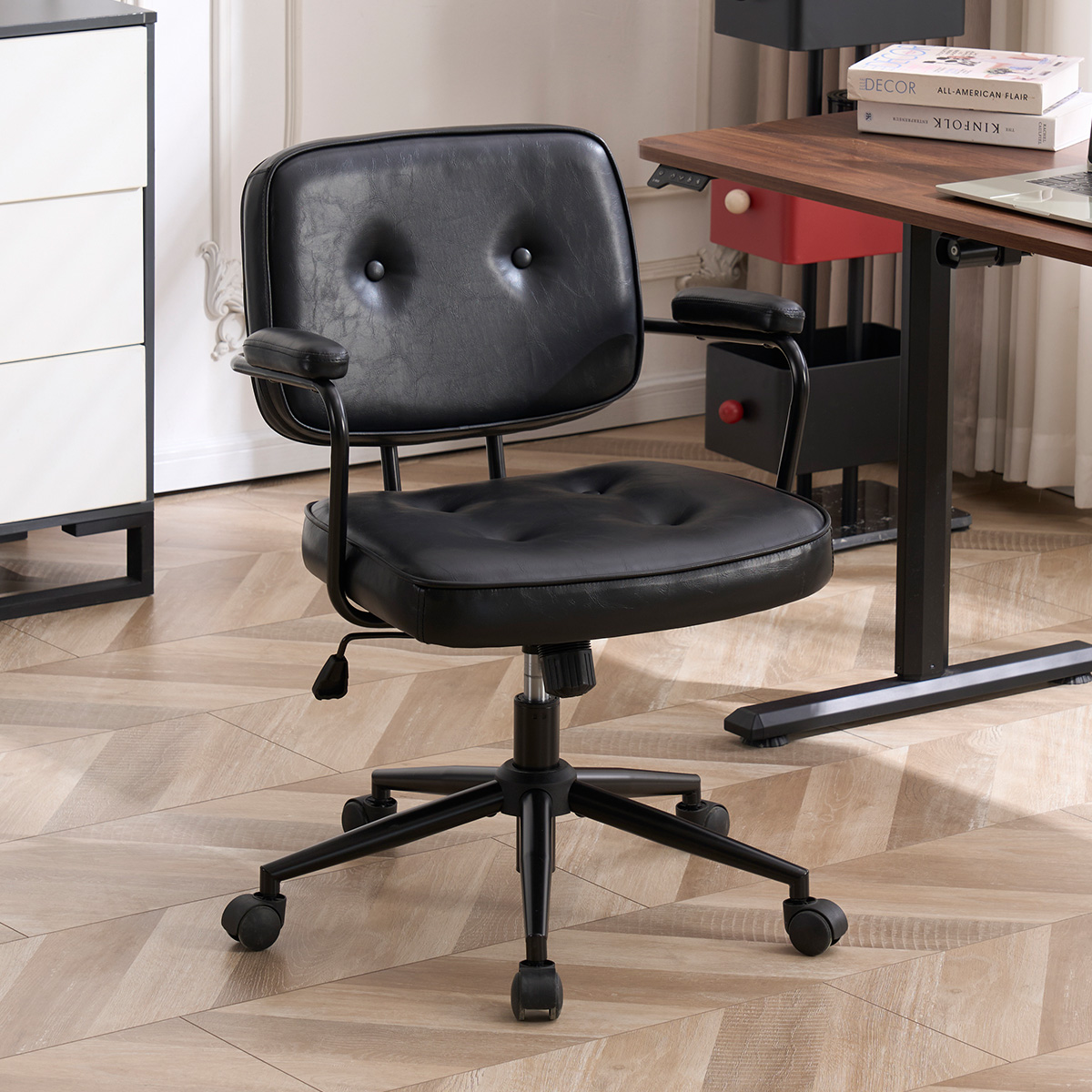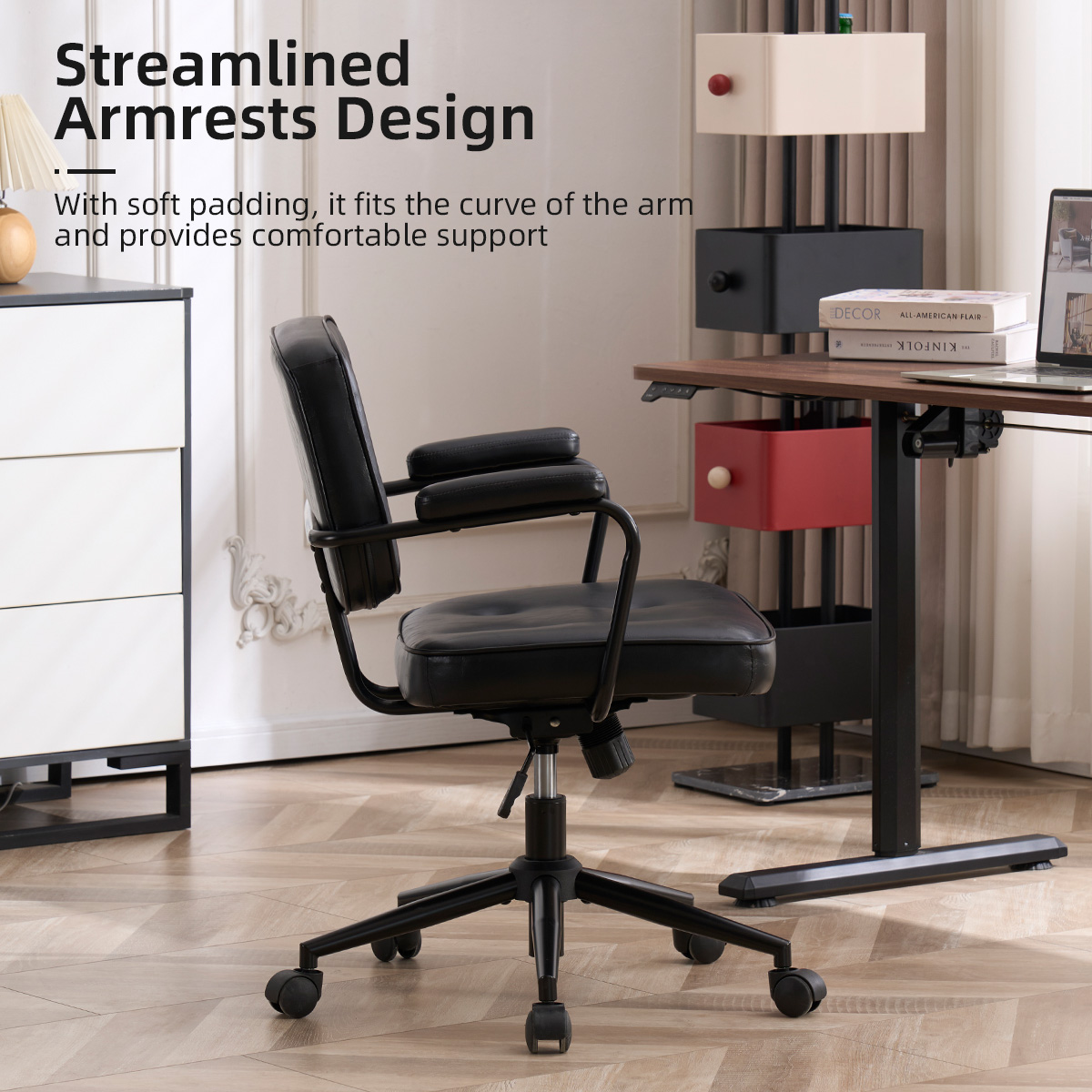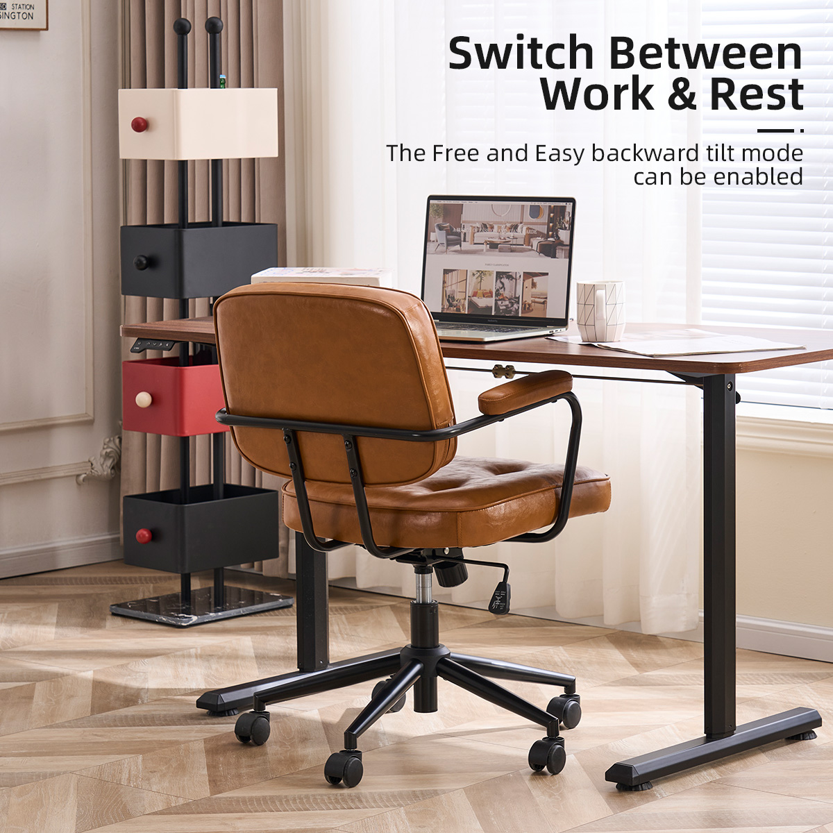 LIRE LA SUITEChaise de bureau Pu Ergonomic Brown / Black Hautable avec des accoudoirs est une chaise de bureau qui combine la conception et le confort ergonomiques, adaptés aux bureaux modernes, aux salles de réunion, aux salles d'étude et à l'utilisation à domicile. Fabriqué en cuir PU brun ou noir, cette chaise a un design arrière haut qui peut soutenir efficacement la colonne vertébrale. Le cadre en métal noir est assorti avec des accoudoirs rembourrés PU. La fonction ajustée en hauteur permet aux utilisateurs de régler la hauteur du siège au besoin. La chaise est équipée de roues pivotantes à 360 degrés pour un mouvement facile sur différentes surfaces tout en restant silencieux et en ne grattant pas le sol.